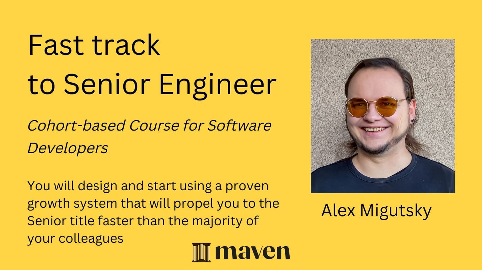 Fast Track to Senior Engineer is a 3-week, cohort-based software developer course on engineering career success. It’s led by Alex Migutsky, a software developer career coach and senior engineer at Microsoft.