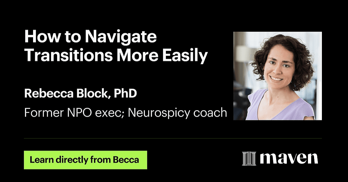 After spending a decade in higher education and a decade as a nonprofit leader, Becca pivoted to working directly with folks who know their brains work a bit differently (whether due to a formal label of ADHD, autism, anxiety, or more, or just the awareness that something about standards strategies for getting work done doesn't work anymore). She brings her love of facilitation, nerdy research insights, and practical strategies to bear in workshops and courses for professionals who are tired of beating their head against the same bland brick wall, and want a new way to tackle their goals.
