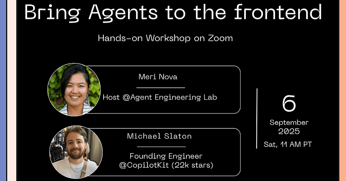 During this workshop you will design modern AI application with Mastra and Copilotkit.