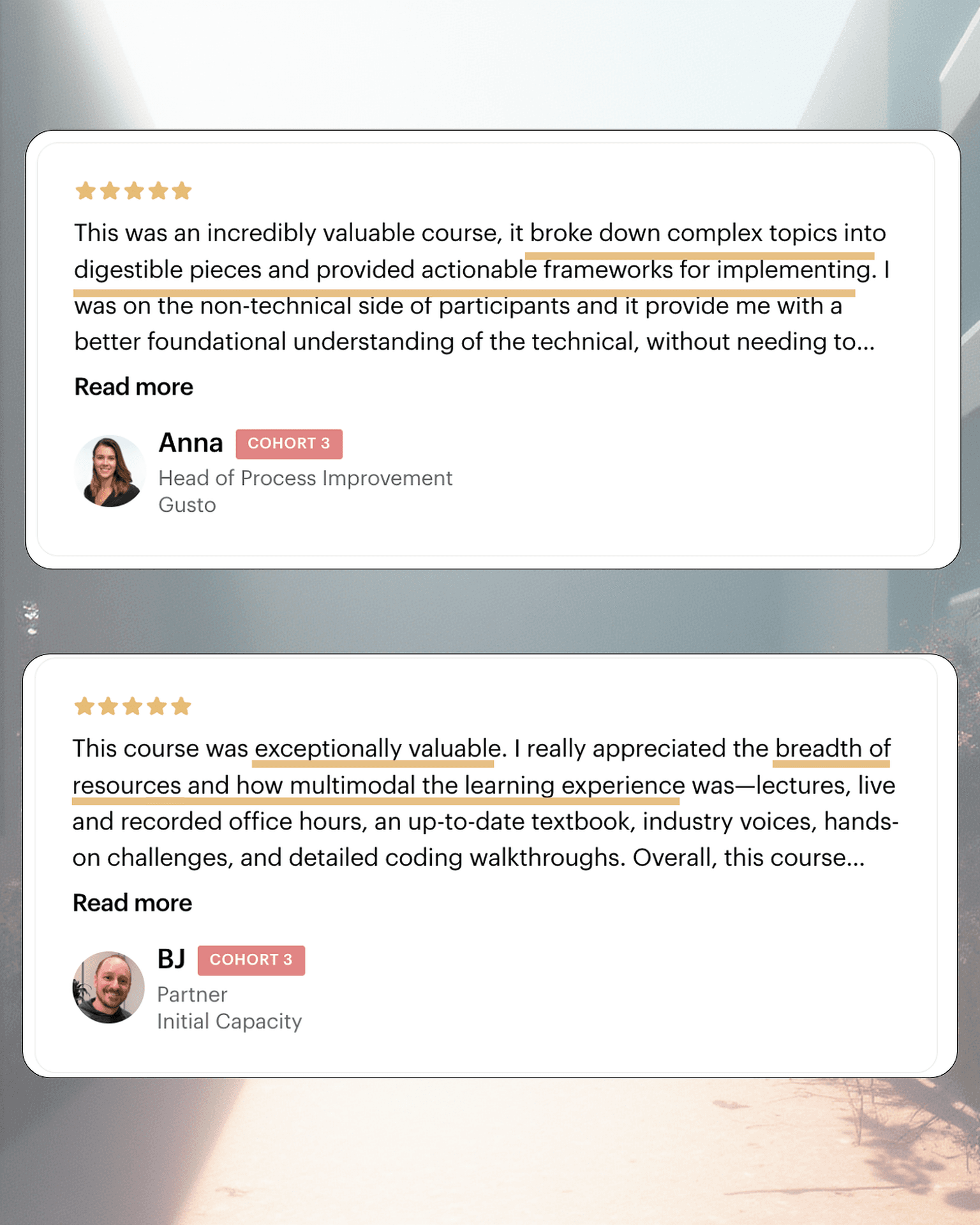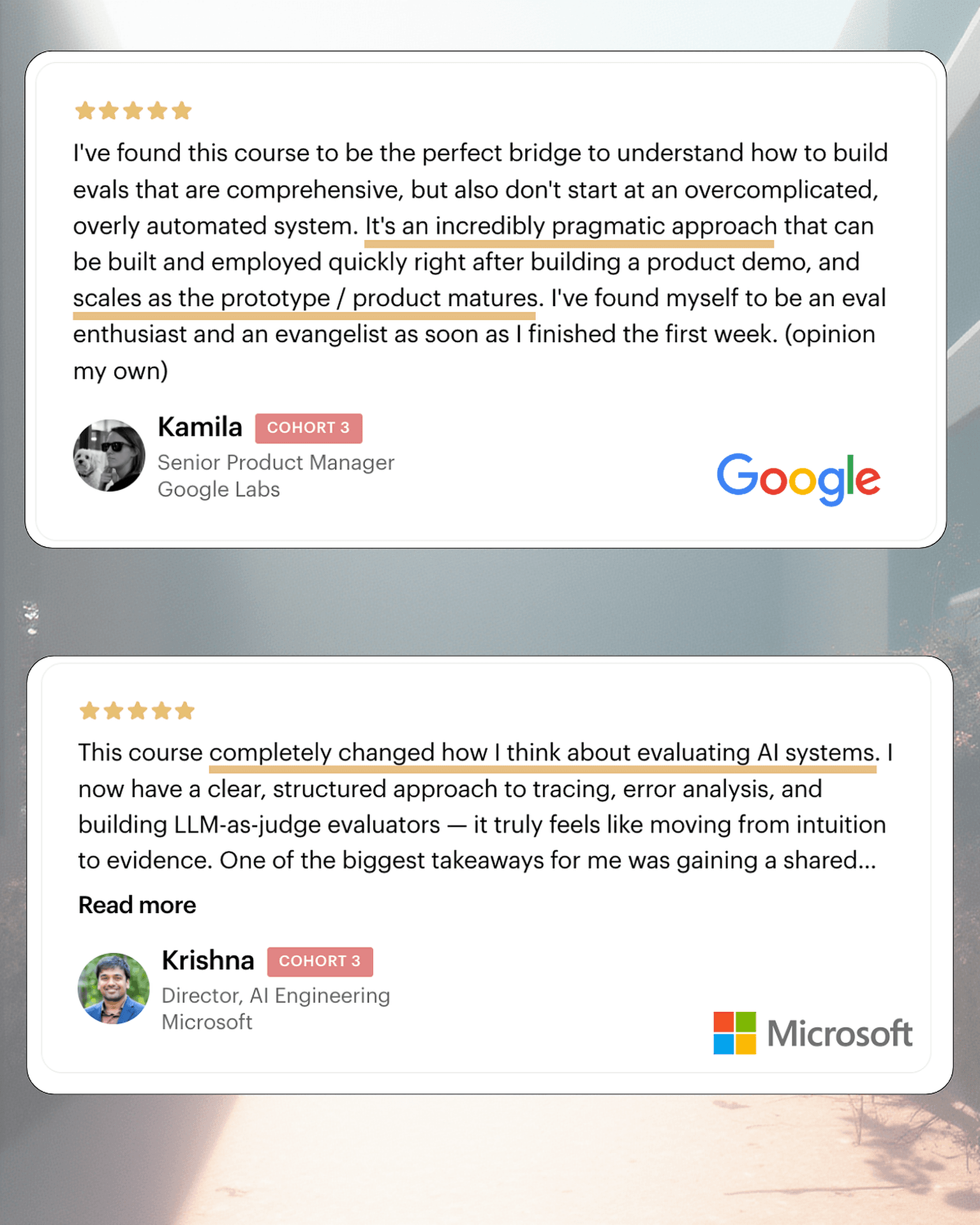 Learn directly from Hamel Husain & Shreya Shankar in a real-time, interactive format.