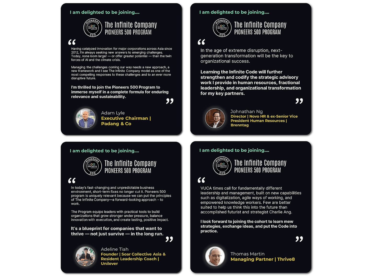 As the name indicates, the program is limited to 500 Pioneers. Each Pioneer will be among the first leaders in the world to master The Infinite Code™ for transcending chaos, uncertainty, and disruption.