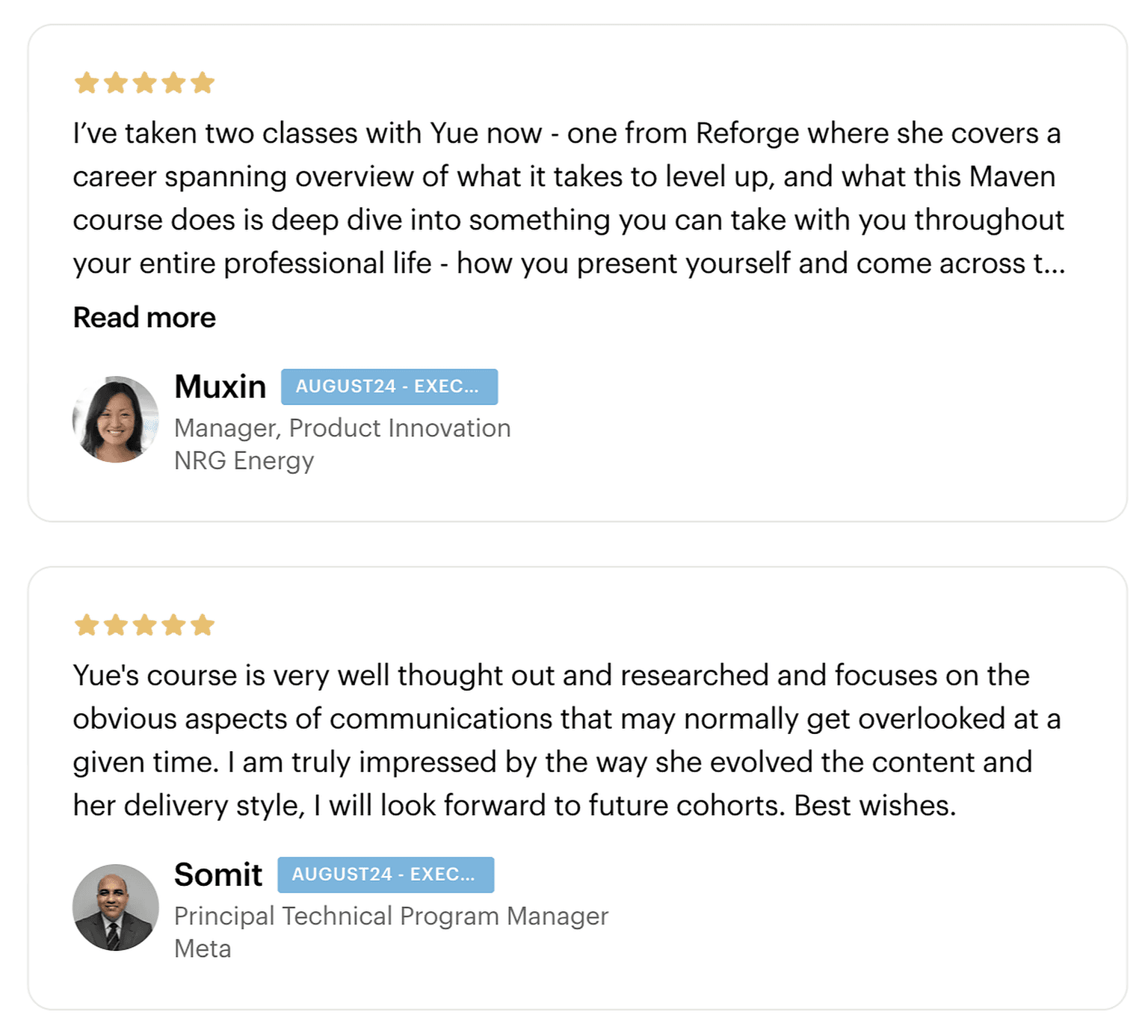 This course is backed by the Maven Guarantee. Students are eligible for a full refund up until the halfway point of the course.
